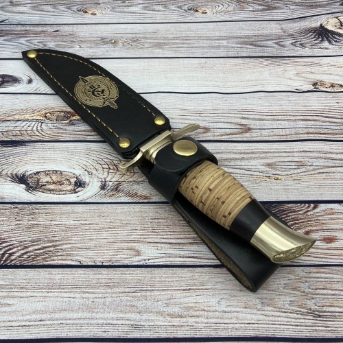 В комплекте к ножу идут ножны из натуральной кожи, а так же сертификат соответствия.