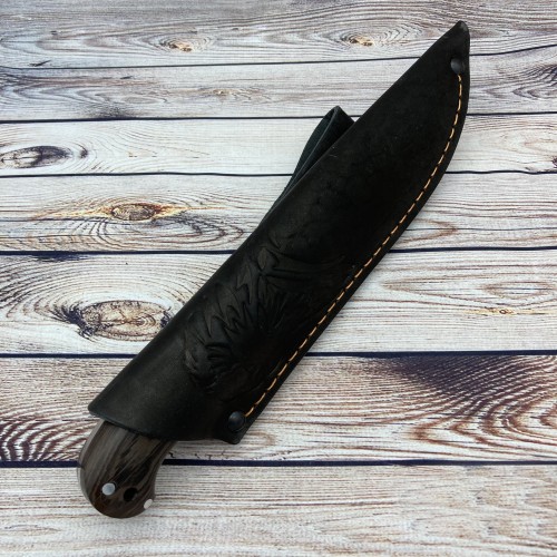 В комплекте к ножу идут ножны из натуральной кожи, а так же сертификат соответствия.