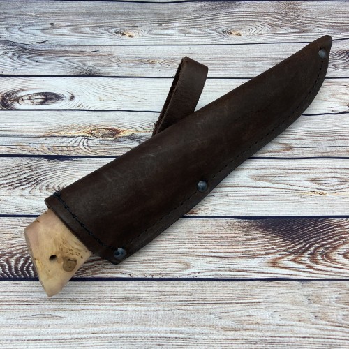 В комплекте к ножу идут ножны из натуральной кожи, а так же сертификат соответствия.