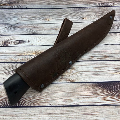 В комплекте к ножу идут ножны из натуральной кожи, а так же сертификат соответствия.