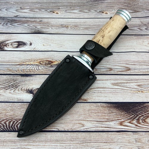В комплекте к ножу идут ножны из натуральной кожи, а так же сертификат соответствия.