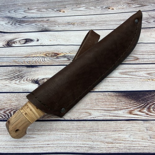В комплекте к ножу идут ножны из натуральной кожи, а так же сертификат соответствия.