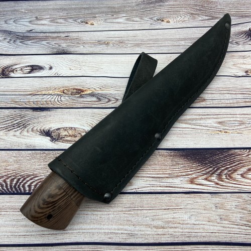 В комплекте к ножу идут ножны из натуральной кожи, а так же сертификат соответствия.