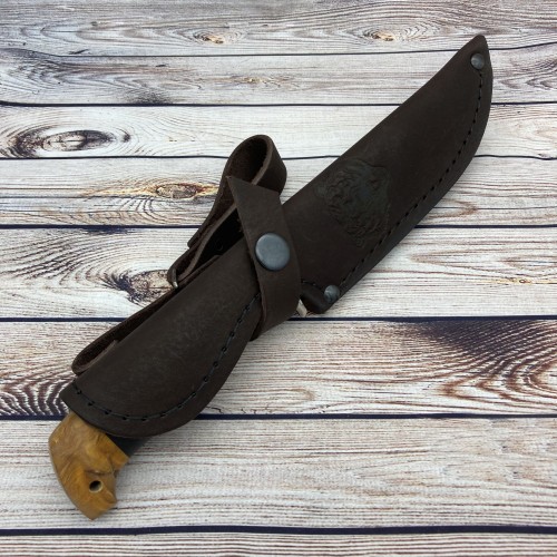 В комплекте к ножу идут ножны из натуральной кожи, а так же сертификат соответствия.