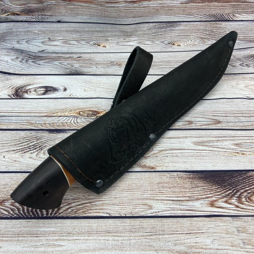 В комплекте к ножу идут ножны из натуральной кожи, а так же сертификат соответствия.
