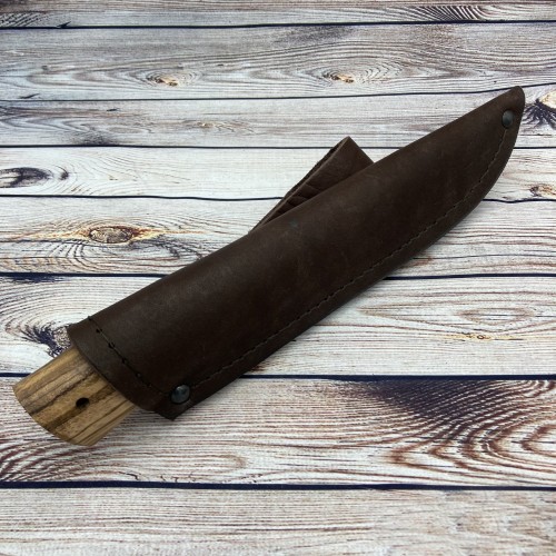 В комплекте к ножу идут ножны из натуральной кожи, а так же сертификат соответствия.