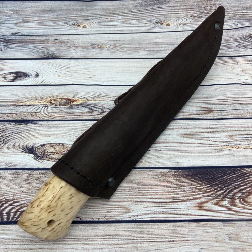 В комплекте к ножу идут ножны из натуральной кожи, а так же сертификат соответствия.