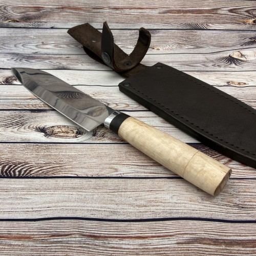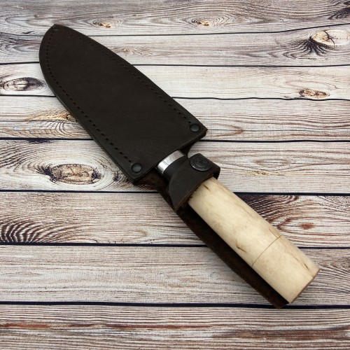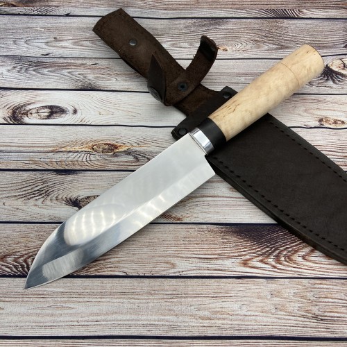 В комплекте к ножу идут ножны из натуральной кожи, а так же сертификат соответствия.