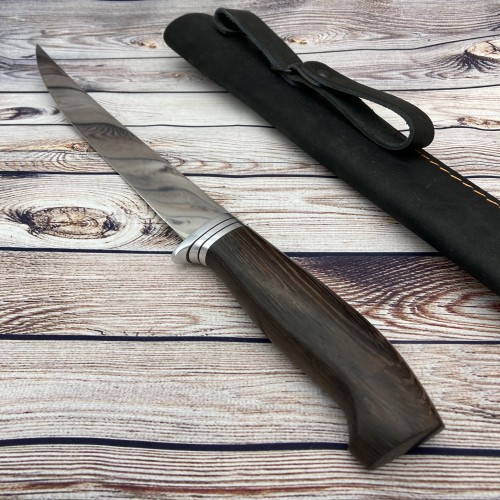 В комплекте к ножу идут ножны из натуральной кожи, а так же сертификат соответствия.