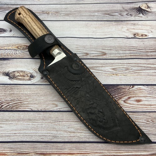 В комплекте к ножу идут ножны из натуральной кожи, а так же сертификат соответствия.