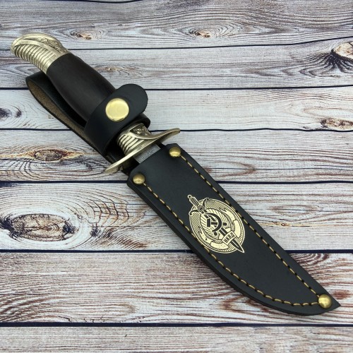 В комплекте к ножу идут ножны из натуральной кожи, а так же сертификат соответствия.