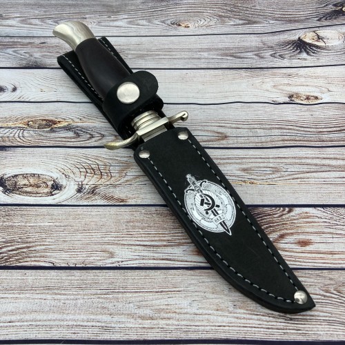 В комплекте к ножу идут ножны из натуральной кожи, а так же сертификат соответствия.