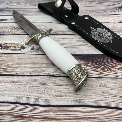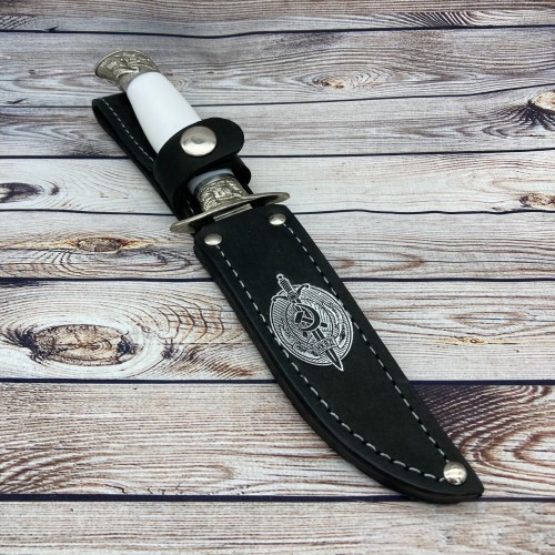 В комплекте к ножу идут ножны из натуральной кожи, а так же сертификат соответствия.