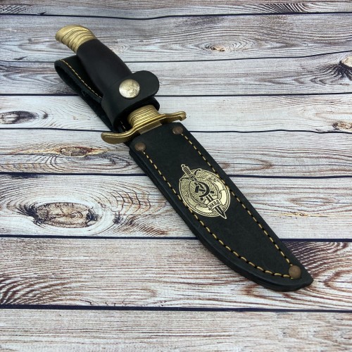 В комплекте к ножу идут ножны из натуральной кожи, а так же сертификат соответствия.