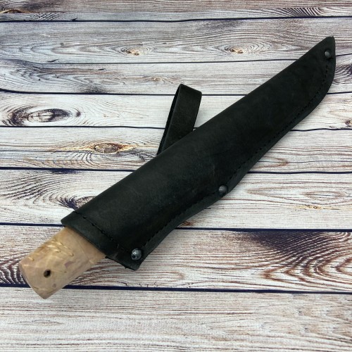 В комплекте к ножу идут ножны из натуральной кожи, а так же сертификат соответствия.