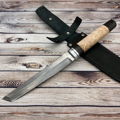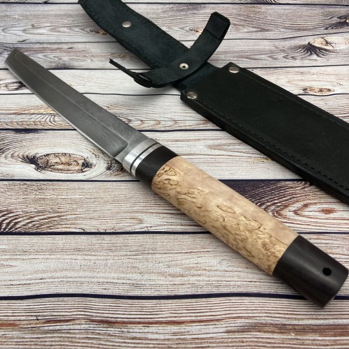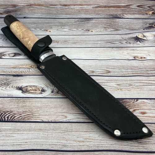В комплекте к ножу идут ножны из натуральной кожи, а так же сертификат соответствия.