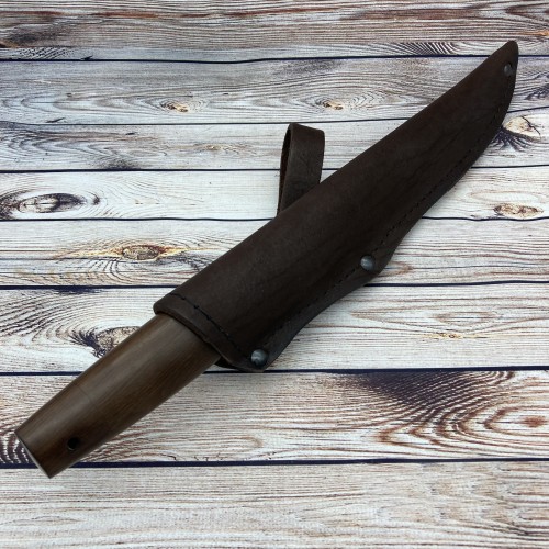 В комплекте к ножу идут ножны из натуральной кожи, а так же сертификат соответствия.