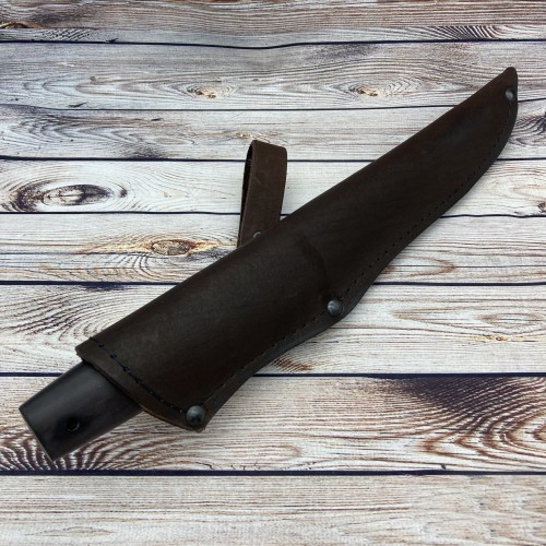 В комплекте к ножу идут ножны из натуральной кожи, а так же сертификат соответствия.