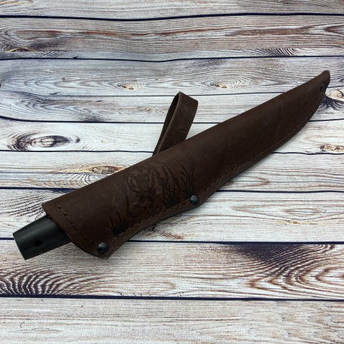 В комплекте к ножу идут ножны из натуральной кожи, а так же сертификат соответствия.