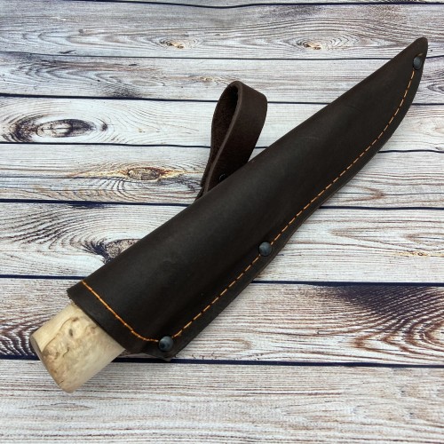 В комплекте к ножу идут ножны из натуральной кожи, а так же сертификат соответствия.