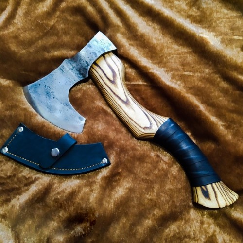 Модель топора 12 Дерево ясень Длина ручки 37см Высота клинка 185мм Длина режущей кромки 135 мм Сталь – углерод 58-59 единиц калки ХВГ Обмотка ручки из кожи Кожаный чехол